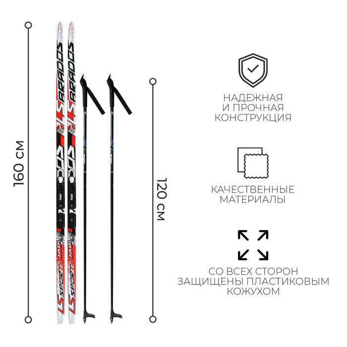 Материал лыжных палок — стеклопластик — гарантирует спортсмену надёжность и прочность всей конструкции, увеличивая срок эксплуатации. Большим плюсом в данной модели является простота подготовки, предварительная обработка не требуется, достаточно встать и поехать.