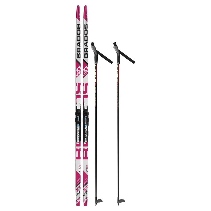 Комплект лыжный: пластиковые лыжи 170 см без насечек, стеклопластиковые палки 130 см, крепления NNN, цвета МИКС — Характеристики
