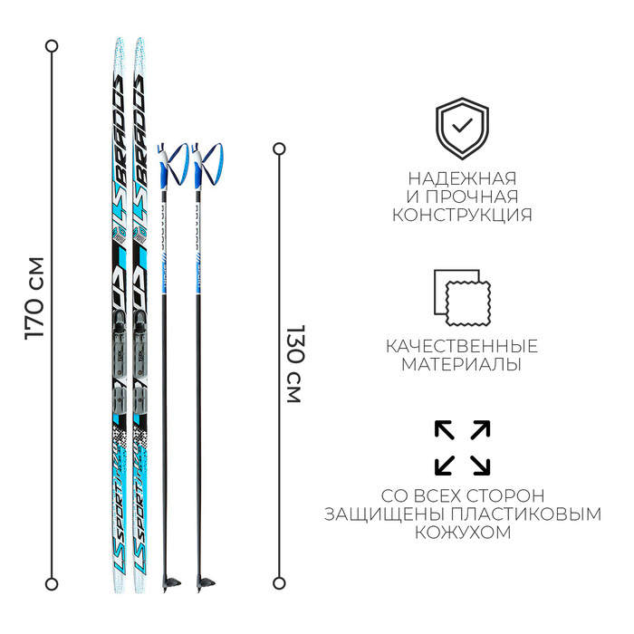 Материал лыжных палок — стеклопластик — гарантирует спортсмену надёжность и прочность всей конструкции, увеличивая срок эксплуатации. Большим плюсом в данной модели является простота подготовки, предварительная обработка не требуется, достаточно встать и поехать.