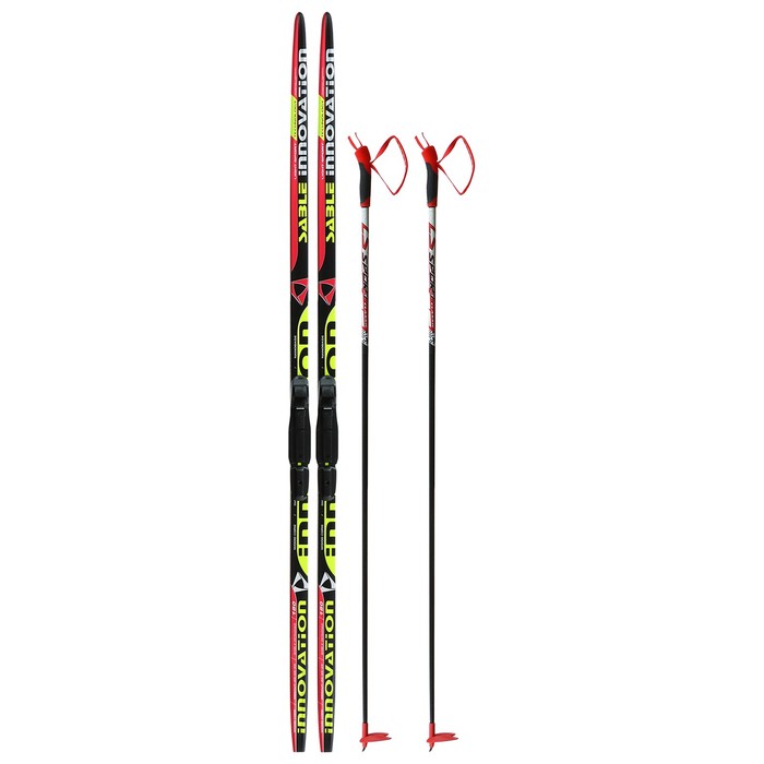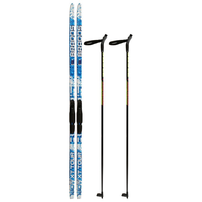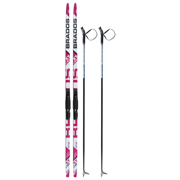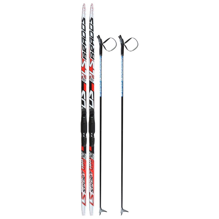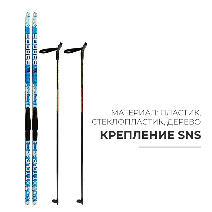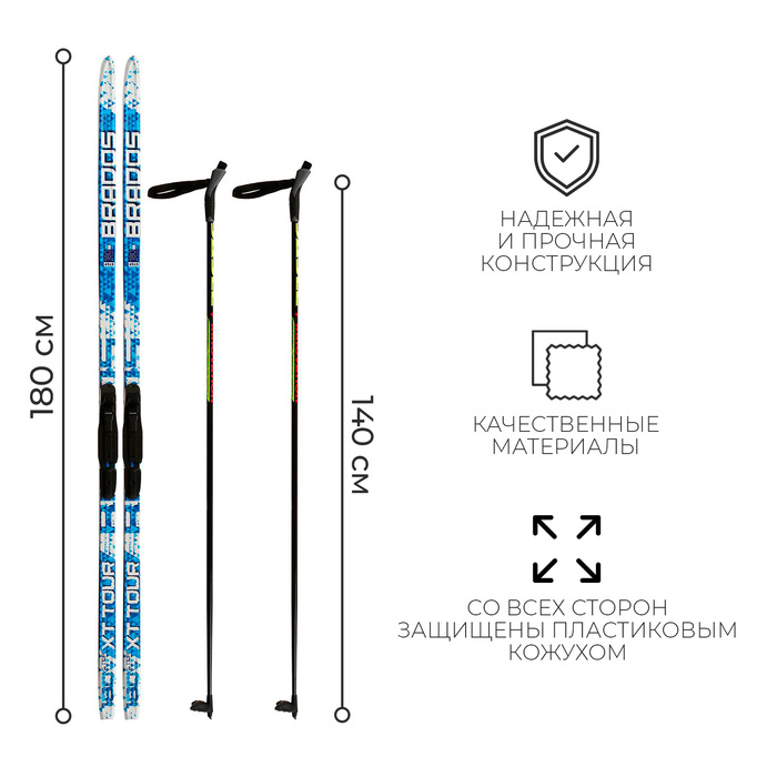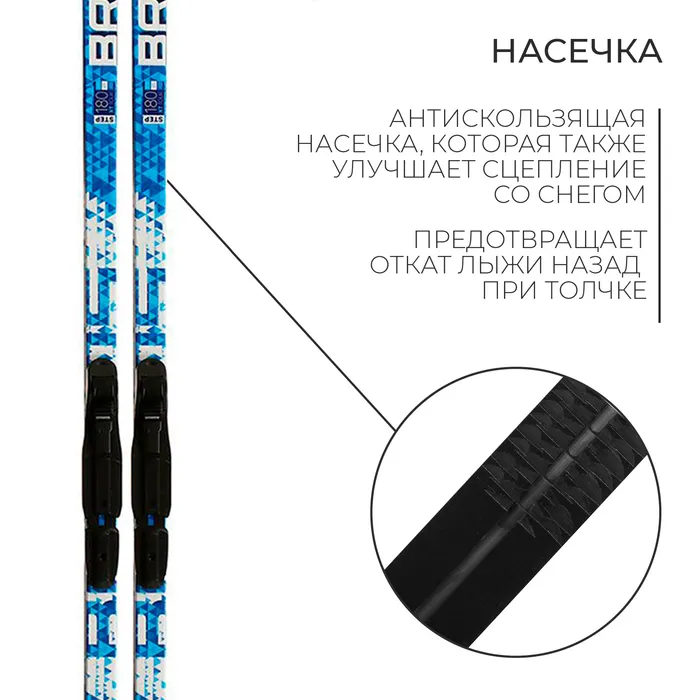 Комплект лыжный: пластиковые лыжи 180 см с насечкой, стеклопластиковые палки 140 см, крепления SNS, цвета МИКС — Характеристики
