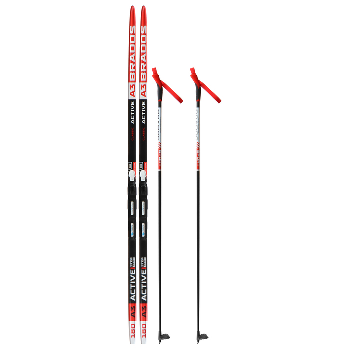 Комплект лыжный: пластиковые лыжи 180 см с насечкой, стеклопластиковые палки 140 см, крепления SNS, цвета МИКС
