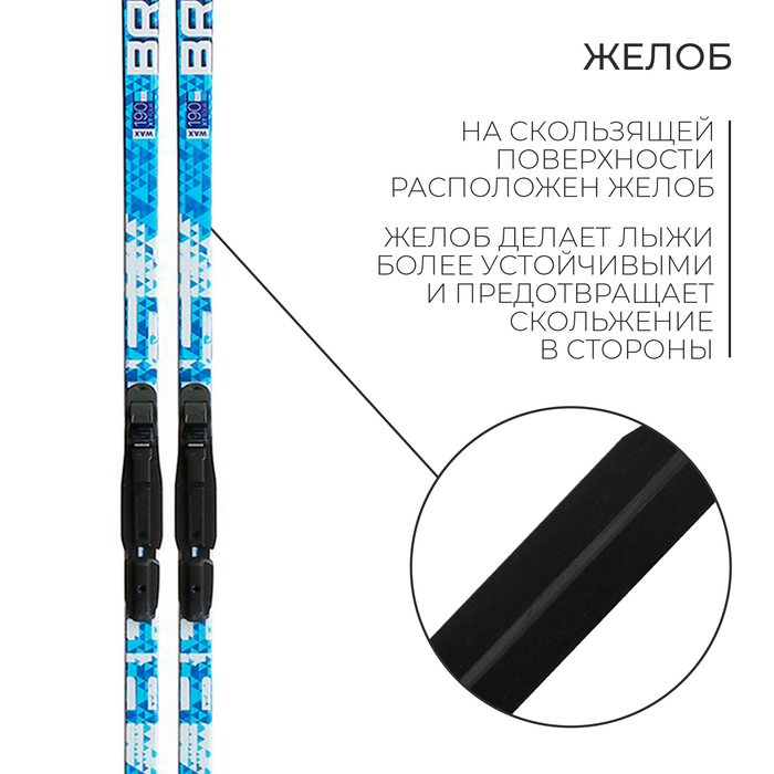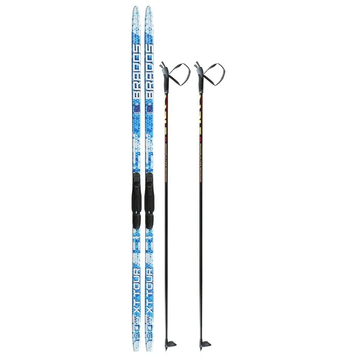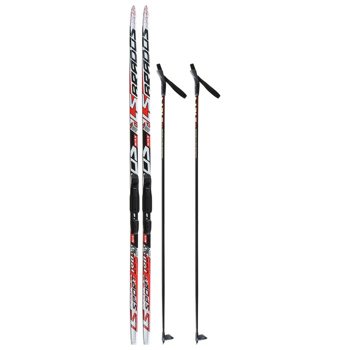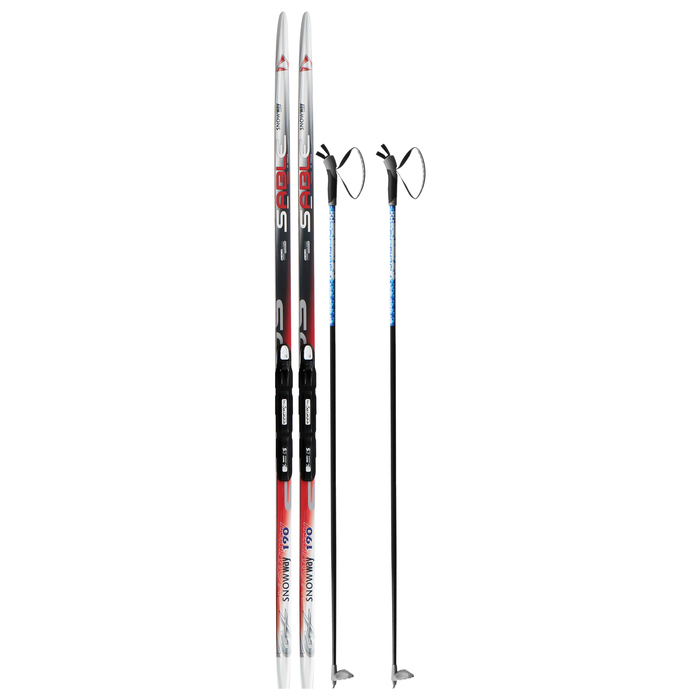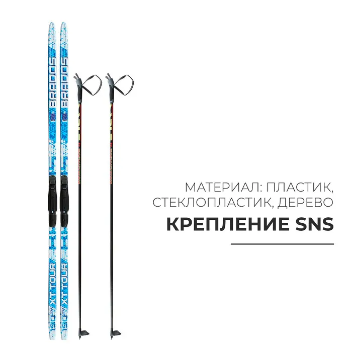 Комплект лыжный: пластиковые лыжи 190 см без насечек, стеклопластиковые палки 150 см, крепления SNS, цвета МИКС — Характеристики