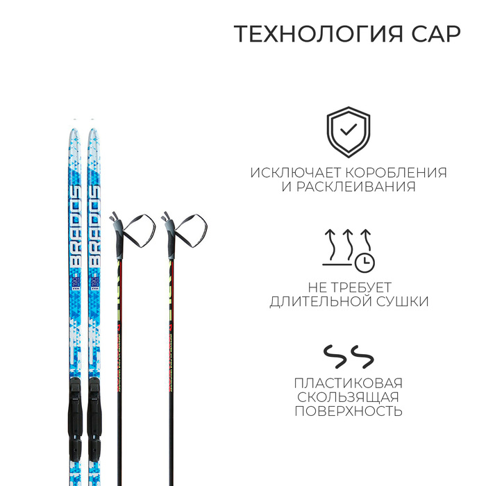 - состав: технология САР. Клин деревянный. Скользящая поверхность: экструдированный ПЭ, геометрия 44. Палки из стеклопластика.