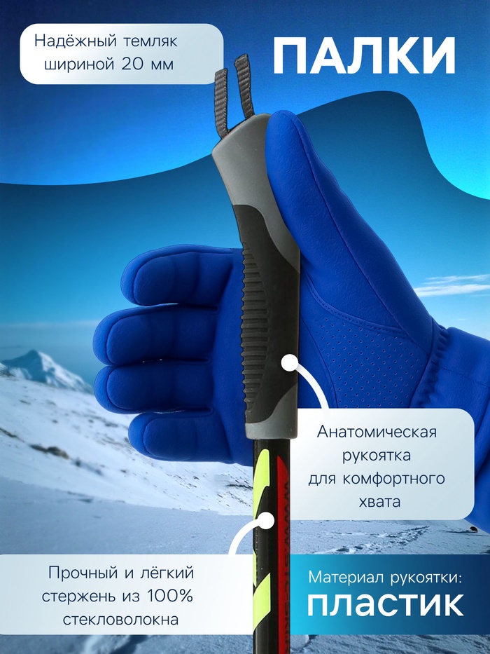 Материал лыжных палок — стеклопластик — гарантирует спортсмену надёжность и прочность всей конструкции, увеличивая срок эксплуатации. Большим плюсом в данной модели является простота подготовки, предварительная обработка не требуется, достаточно встать и поехать.