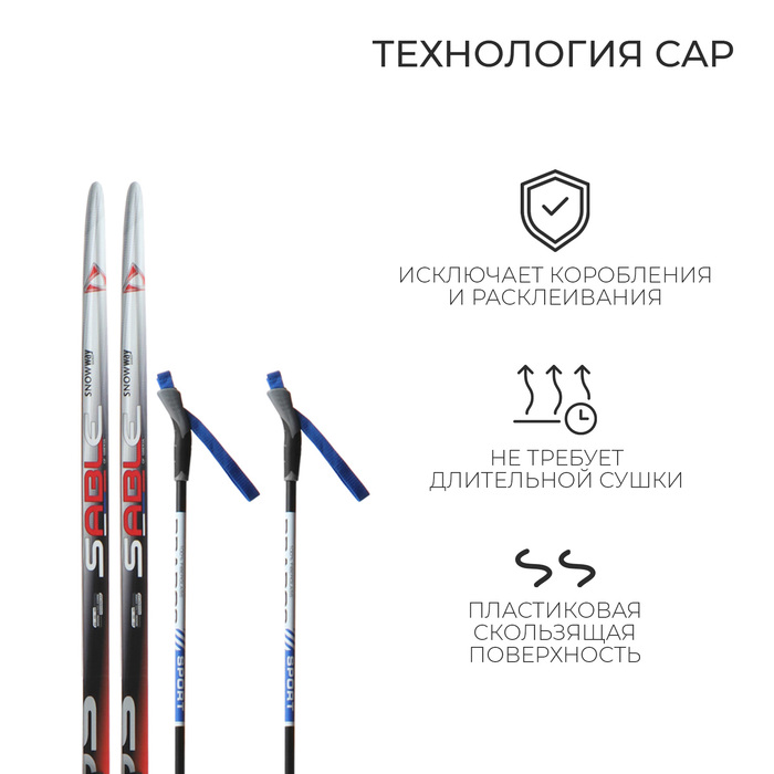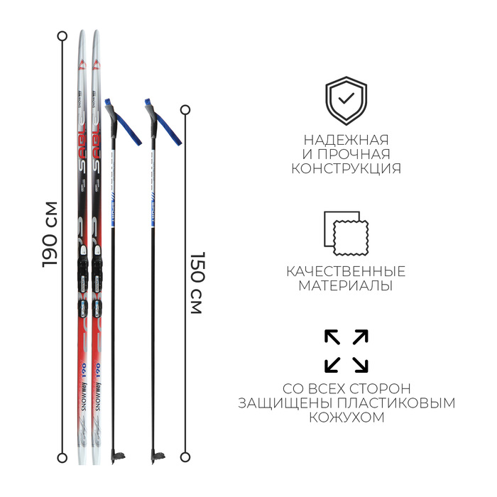 Материал лыжных палок — стеклопластик — гарантирует спортсмену надёжность и прочность всей конструкции, увеличивая срок эксплуатации. Большим плюсом в данной модели является простота подготовки, предварительная обработка не требуется, достаточно встать и поехать.