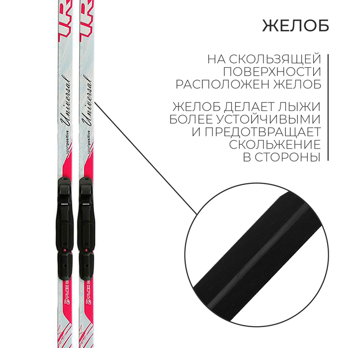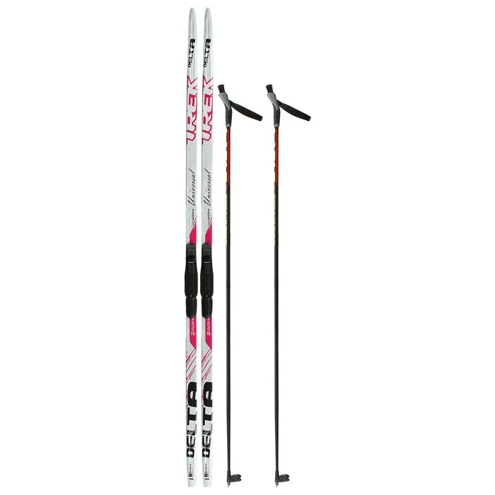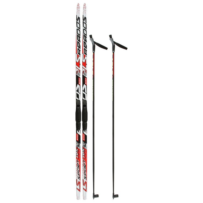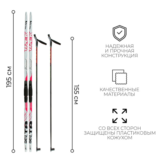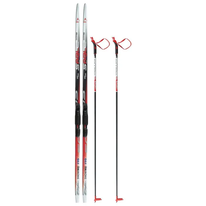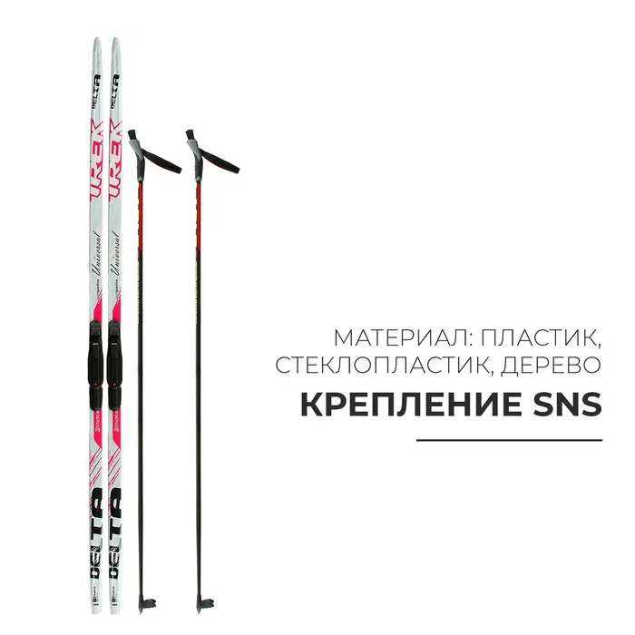 Комплект лыжный: пластиковые лыжи 195 см без насечек, стеклопластиковые палки 155 см, крепления SNS, цвета МИКС — Характеристики
