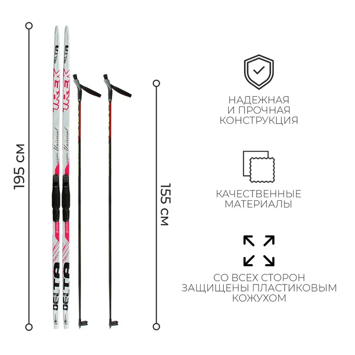 Материал лыжных палок — стеклопластик — гарантирует спортсмену надёжность и прочность всей конструкции, увеличивая срок эксплуатации. Большим плюсом в данной модели является простота подготовки, предварительная обработка не требуется, достаточно встать и поехать.