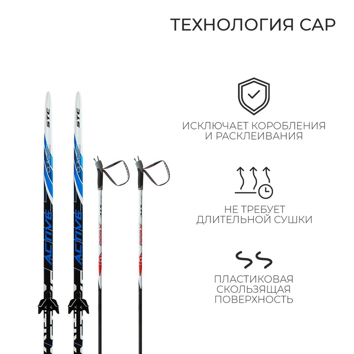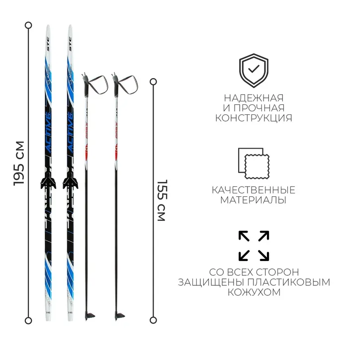 Материал лыжных палок — стеклопластик — гарантирует спортсмену надёжность и прочность всей конструкции, увеличивая срок эксплуатации. Большим плюсом в данной модели является простота подготовки, предварительная обработка не требуется, достаточно встать и поехать.