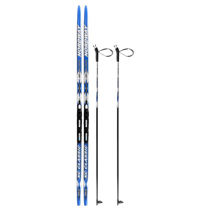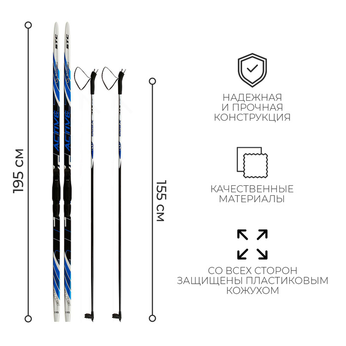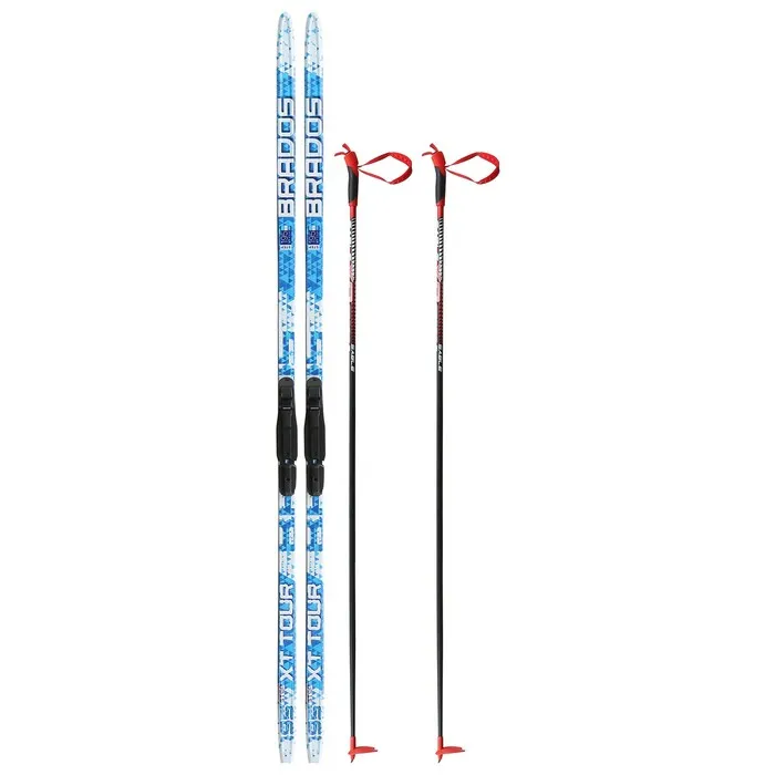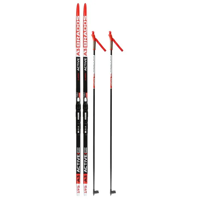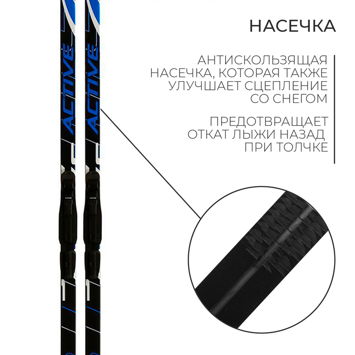 Комплект лыжный: пластиковые лыжи 195 см с насечкой, стеклопластиковые палки 155 см, крепления SNS, цвета МИКС — Характеристики