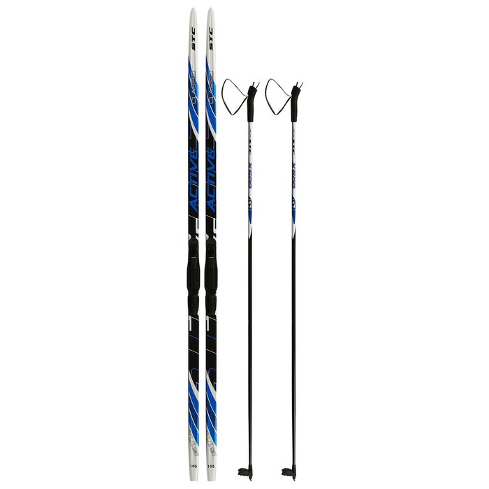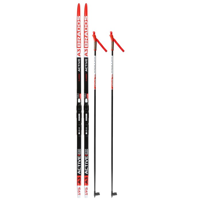 Комплект лыжный: пластиковые лыжи 195 см с насечкой, стеклопластиковые палки 155 см, крепления SNS, цвета МИКС