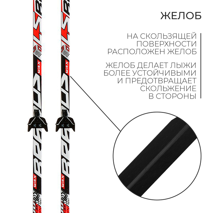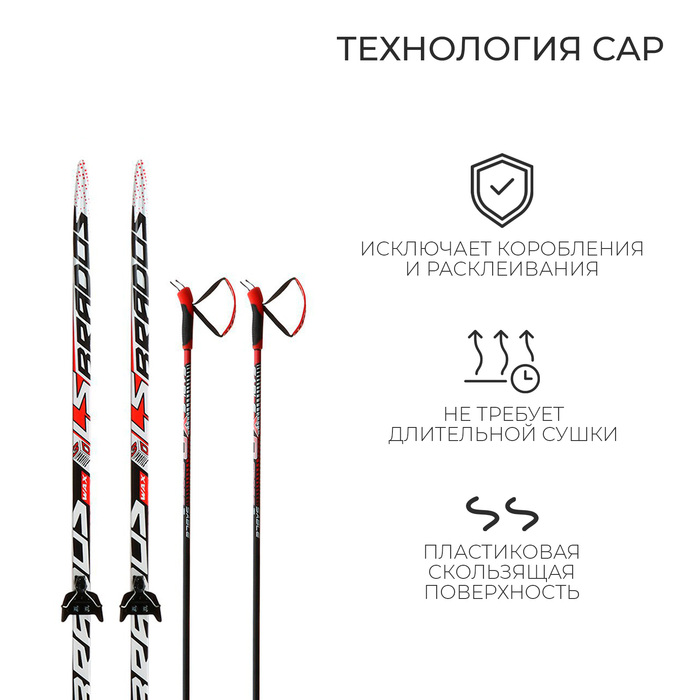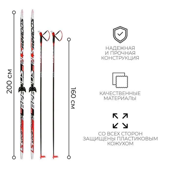 Материал лыжных палок — стеклопластик — гарантирует спортсмену надёжность и прочность всей конструкции, увеличивая срок эксплуатации. Большим плюсом в данной модели является простота подготовки, предварительная обработка не требуется, достаточно встать и поехать.