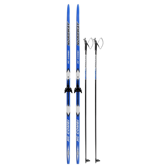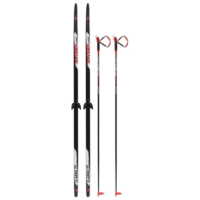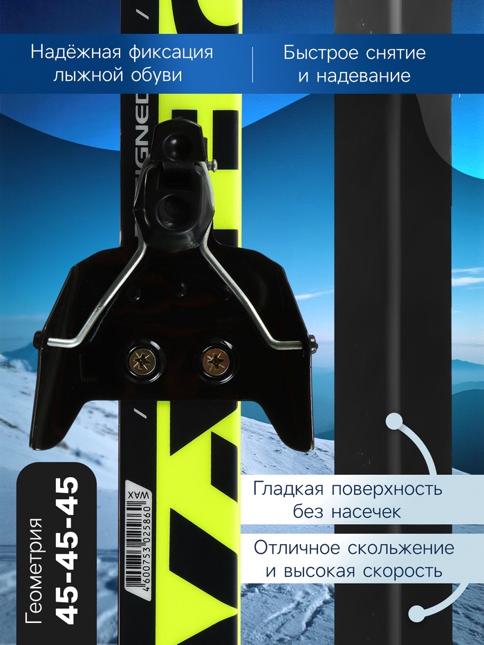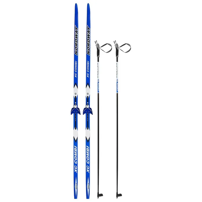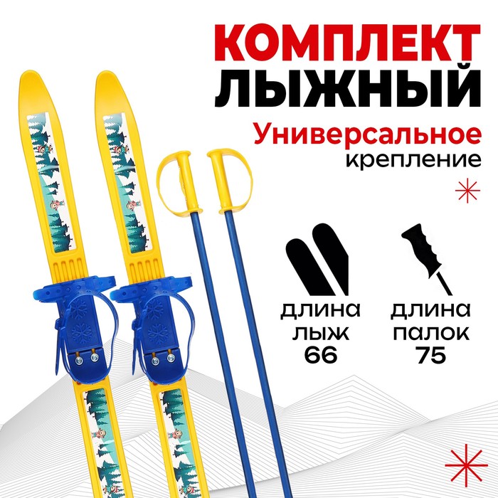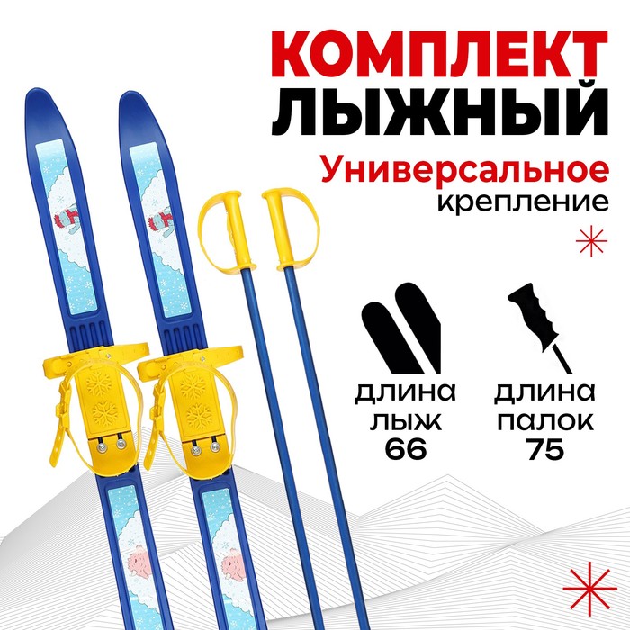Комплект лыжный: пластиковые лыжи 205 см без насечек, стеклопластиковые палки 165 см, крепления NN75 мм, цвета МИКС — Характеристики