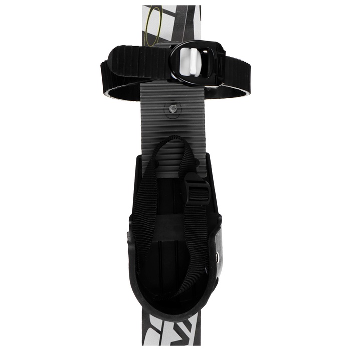 Универсальные крепления представлены в виде ремешка с регулировкой на застёжке. Резиновые накладки и подпятники обеспечивают сцепление с обувью, надёжную фиксацию, а также препятствуют налипанию снега. На нижней поверхности лыжи есть продольная канавка для уменьшения бокового скольжения.