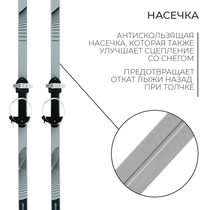 Технология газонаполненного литья гарантирует высокую прочность и оптимальную жёсткость полоза для начинающих лыжников. Противооткатная насечка на полозе не даёт лыжам проскальзывать на снегу.