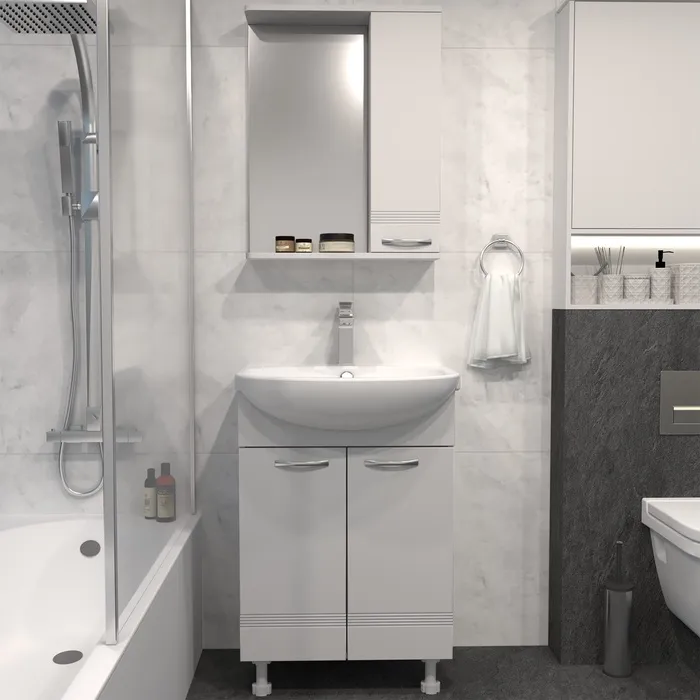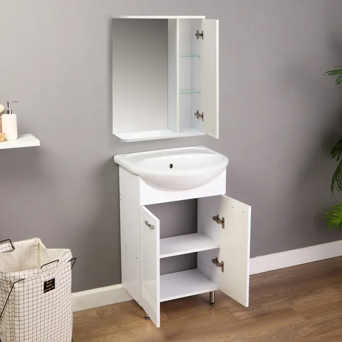 Комплект мебели для ванной комнаты "Гармония 55": тумба с раковиной + зеркало-шкаф — Характеристики