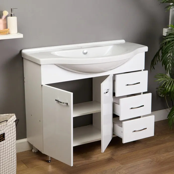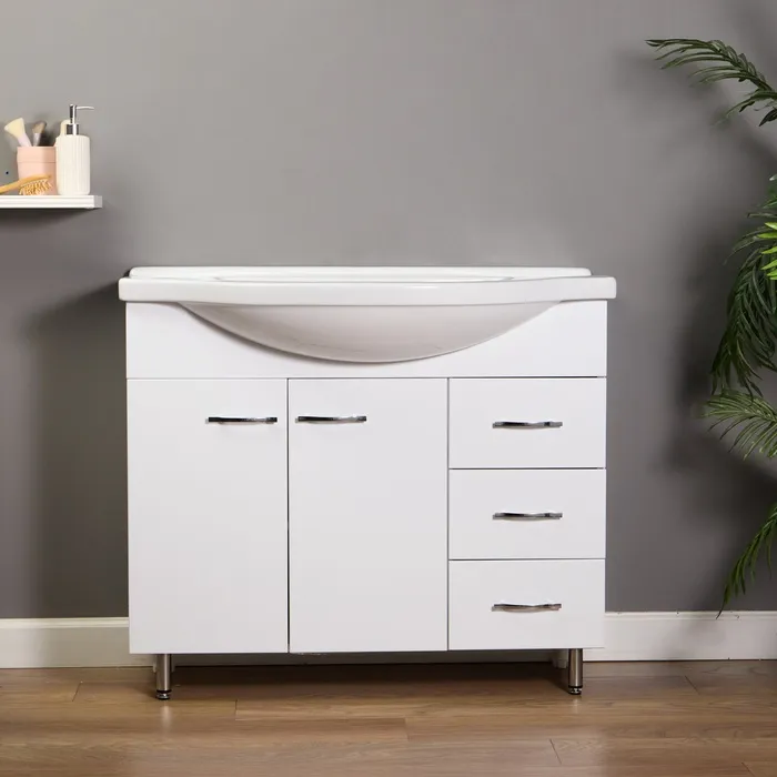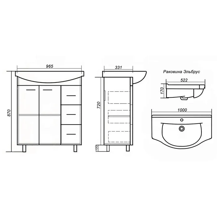 Комплект мебели для ванной: Тумба "Элеганс 100/3" + раковина" Эльбрус", 97 х 33 х 82 см — Характеристики