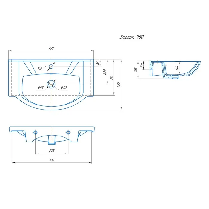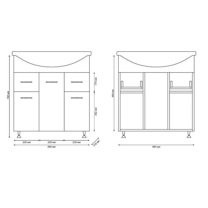 Комплект мебели для ванной: Тумба "Люси 75" + раковина "Элеганс 75", 75 х 86,5 х 45 см — Характеристики