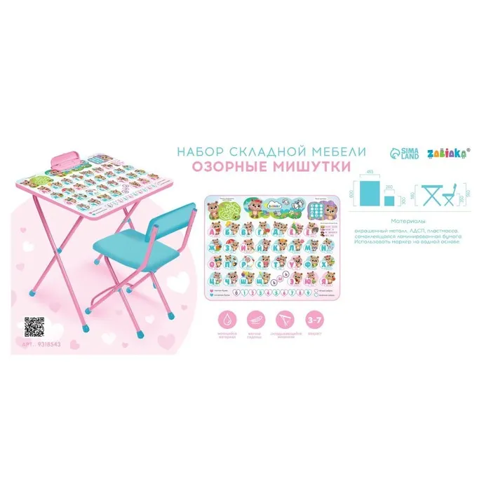 Ребёнок будет охотней заниматься творчеством, учиться писать, считать и познавать мир, если его окружить яркой и удобной мебелью. Набор складной мебели станет милым дополнением детской комнаты.