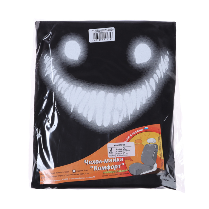 Комплект «Бахтаг» состоит из двух маек и двух подголовников, предназначенных для установки на передние сиденья автомобиля. Майки изготовлены из высококачественного текстиля, а подголовники обеспечивают комфорт во время длительных поездок. Светоотражающий принт на подголовниках повышает видимость автомобиля в тёмное время суток, обеспечивая безопасность водителя и пассажиров.