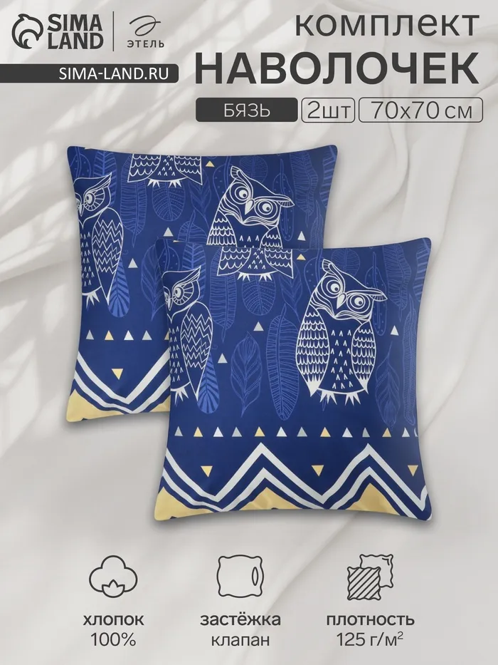 Комплект наволочек «Этель. Ушастые совы (вид 3)», 70×70 см, 2 шт., бязь, хлопок 100% — Характеристики