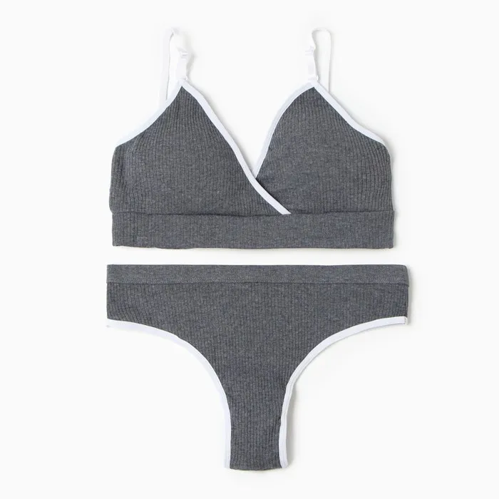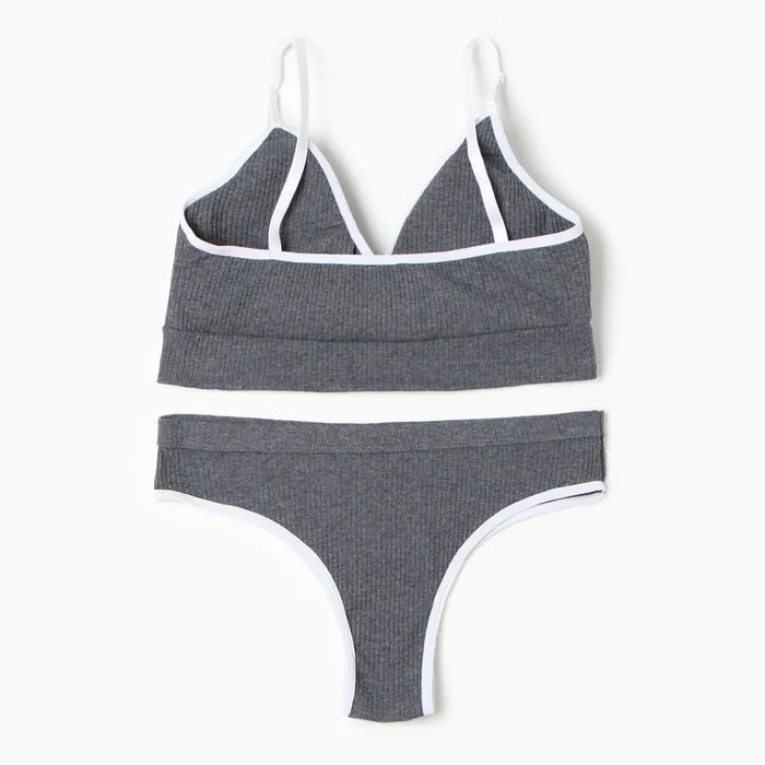 Комплект женский (топ с тонкими лямками, трусы), цвет серый МИКС, размер 44-46