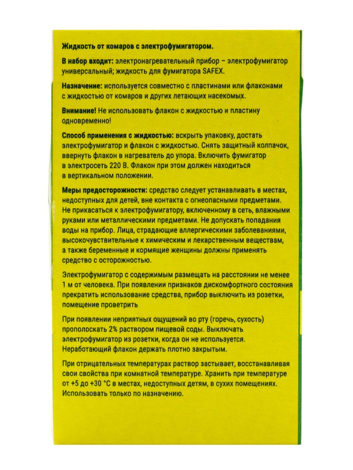 Комплект от комаров SAFEX (фумигатор+жидкость) 2 набора — Характеристики