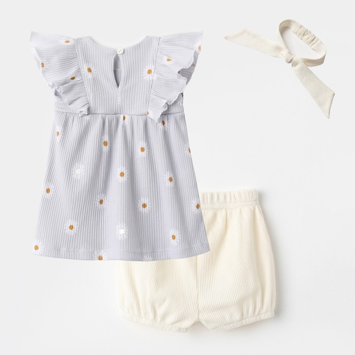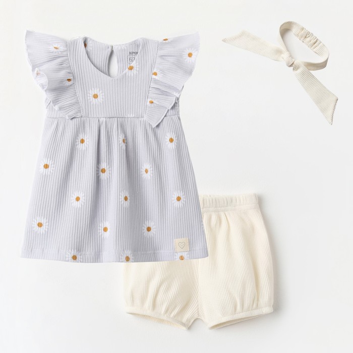 Комплект: платье, шорты, повязка Крошка Я Ромашка, рост 86-92 см, серый — Характеристики