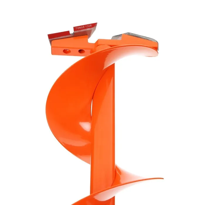 Цельнотянутый шнек с диаметром 130 мм и правым вращением предназначен для комфортного бурения льда с электродвигателем (шуруповёртом) в любых условиях. Выверенный угол атаки делает бурение быстрым. Надёжное полимерное покрытие оранжевого цвета выдерживает резкие колебания температуры и сильные механические нагрузки.