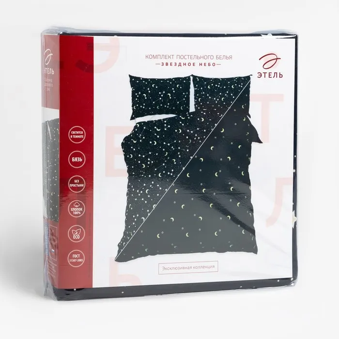 Комплект: пододеяльник и 2 наволочки «Звездное небо» 200х215 см, 50х70 см - 2 шт, 100% хлопок — Характеристики