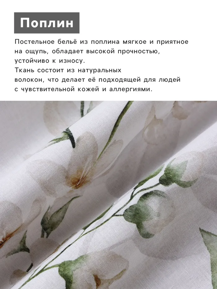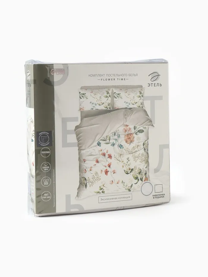 Комплект постельного белья Этель Евро Flower time 200×217 см, 220×240 см, 50×70 см-2 шт., поплин 125 г/м², хлопок 100% — Характеристики