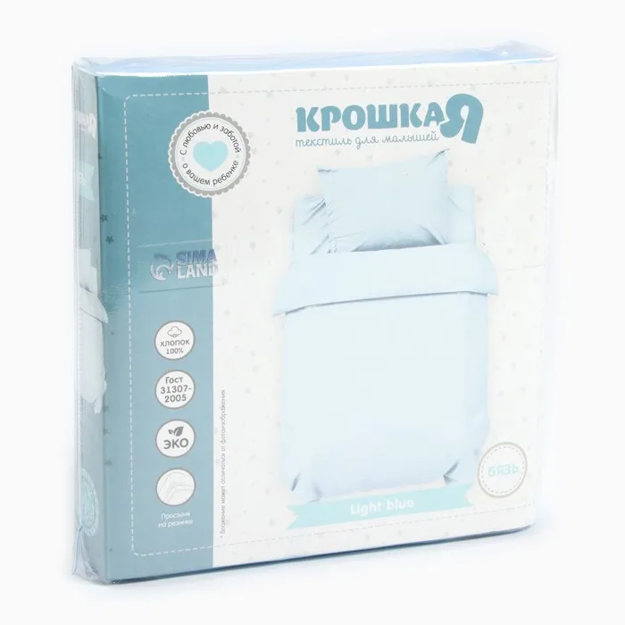 Комплект постельного белья "Крошка Я" Light blue 112*147 см, 60*120+20 см, 40*60 см, 100% хлопок — Характеристики