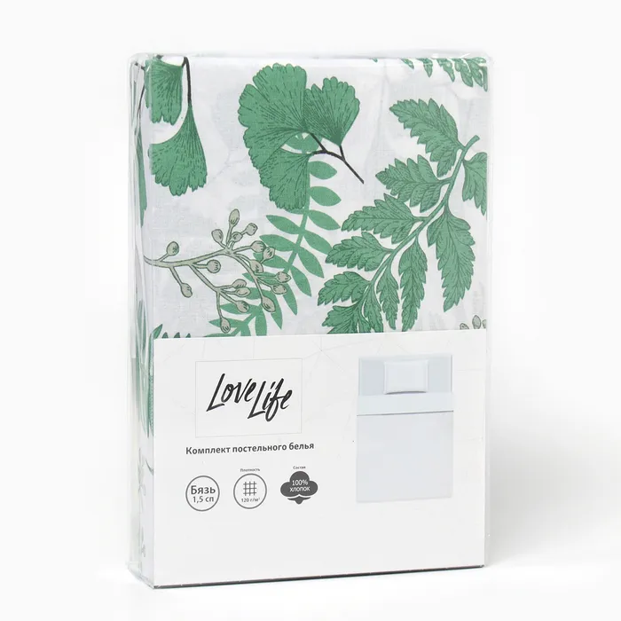 Комплект постельного белья LoveLife 1.5 сп "Гербарий" 147*210,150*215,50*70 -1 шт,100% хлопок,бязь 120 г/м2 — Характеристики