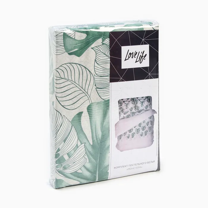 Комплект постельного белья LoveLife 2 сп "Монстера" 175*215см, 210*220см, 50*70см-2шт, 100% хлопок, бязь, 125г/м2 — Характеристики