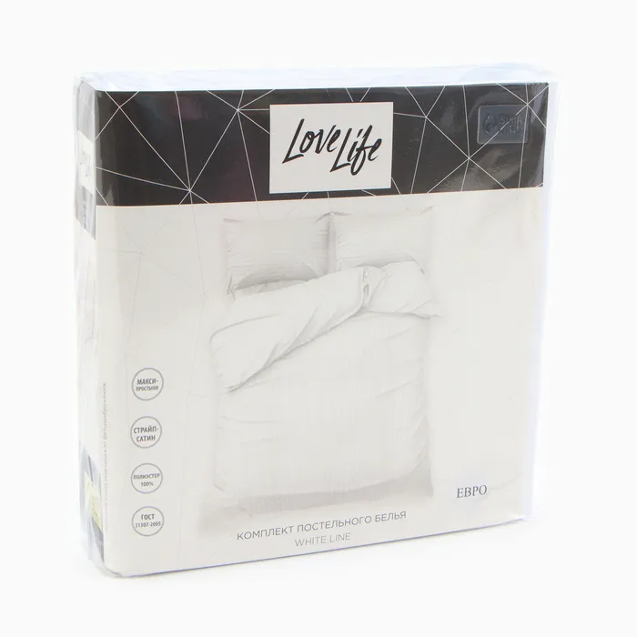Комплект постельного белья LoveLife евро White lines 200*217 см, 230*240 см, 50*70 см -2 шт, страйп-сатин, 100%п/э — Характеристики