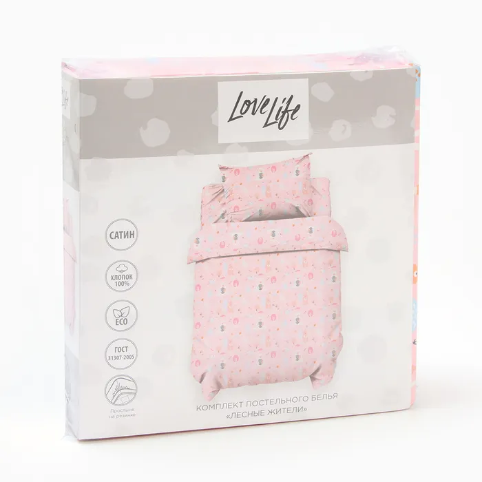 Комплект постельного белья LoveLife "Лесные жители" 112*143 см, 60*120+20 см, 40*60 см, сатин, 100% хлопок — Характеристики