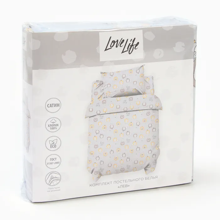 Комплект постельного белья LoveLife "Лев" 112*143 см, 60*120+20 см, 40*60 см, сатин, 100% хлопок — Характеристики