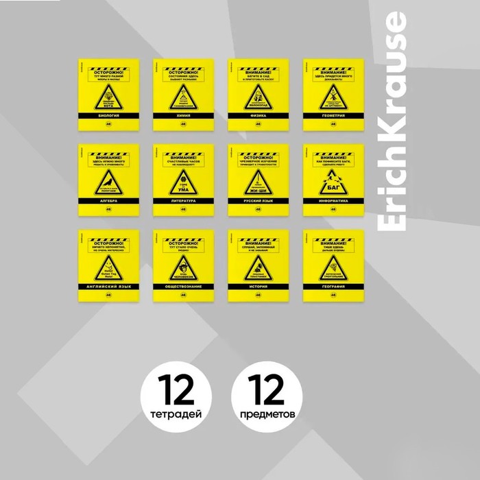 Комплект предметных тетрадей 48 листов, 12 штук, ErichKrause Be Informed, пластиковая обложка, шелкография, блок офсет 100% белизна, инфо-блок — Характеристики