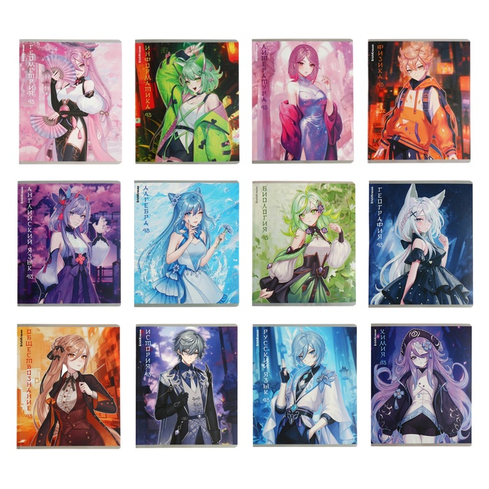 Комплект предметных тетрадей 48 листов, 12 штук, ErichKrause "Manga", мелованный картон, блок офсет белизна 100%, инфо-блок — Характеристики