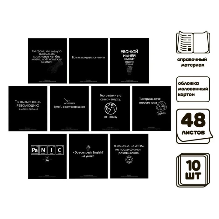 Комплект предметных тетрадей 48 листов "На Чёрном", 10 предметов, со справочным материалом — Характеристики