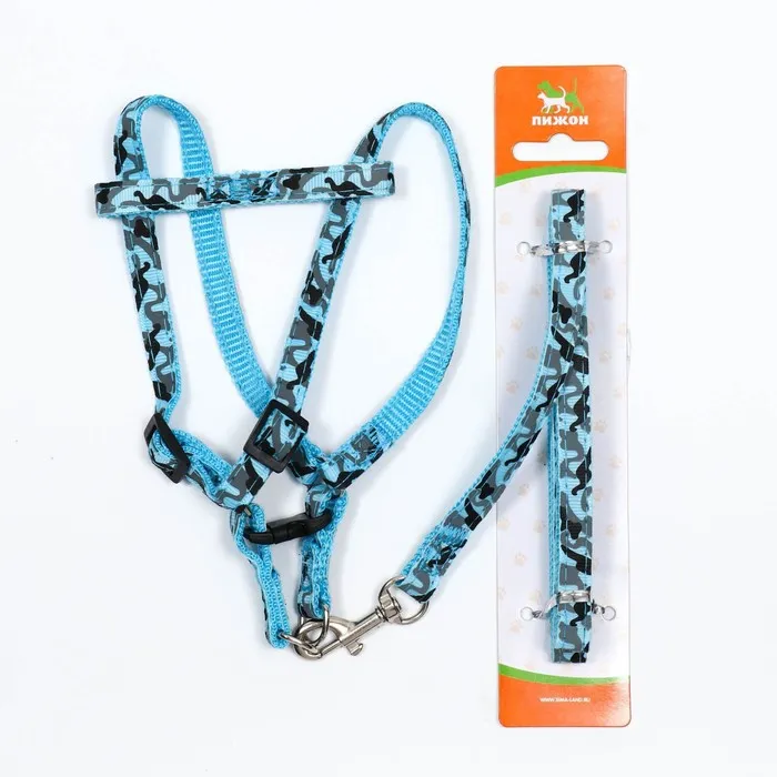 Яркий прогулочный комплект для собак прошитый . Шлейка регулируется а ремни шлейки не давят на грудь и шею а равномерно распределяют нагрузку. Шлея для собак 3 , 5 , 10 , 15, 20 кг мелких пород и кошек . Шлейка текстильная , регулируется пластиковыми креплениями. Поводок крепится к металлическому кольцу карабином. На спине амуниция фиксируется застежкой из пластика. Шлейка исключит побег животного, если правильно подобрать размер и отрегулировать ремни.