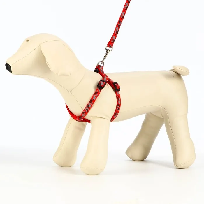 Комплект прошитый "Милитари", ширина 1 см, поводок 120 см, шлейка 23-35 см, красный — Характеристики
