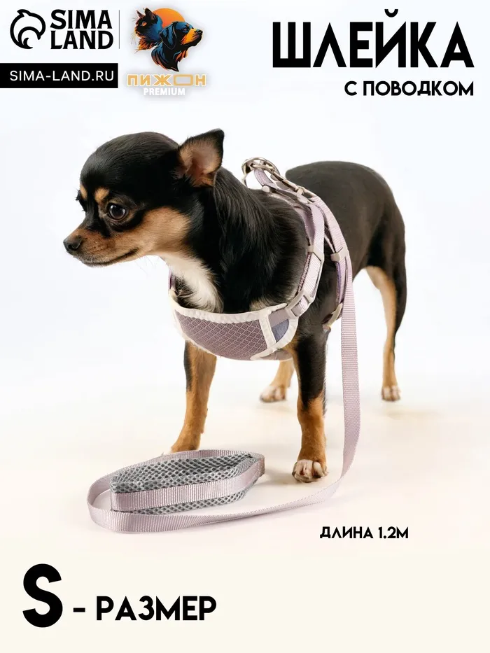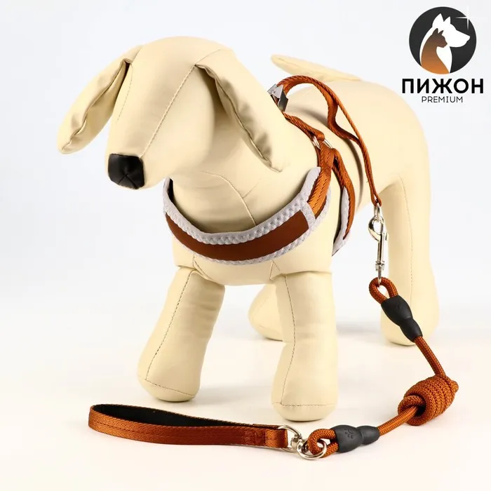 Обхват груди (ОГ) регулируется в диапазоне от 23 до 35 см, что делает комплект подходящим для маленьких и средних пород собак. Прошитая шлейка аккуратно облегает тело питомца, не вызывая дискомфорта и не стесняя его движений.