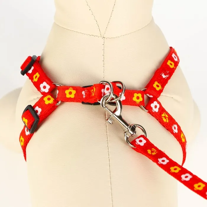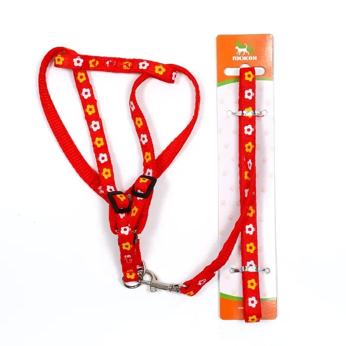 Узор в виде цветов добавляет комплекту романтичности и оригинальности, делая его заметным и привлекательным. Этот аксессуар станет отличным дополнением к образу вашего питомца, подчеркнув его индивидуальность и жизнерадостность.