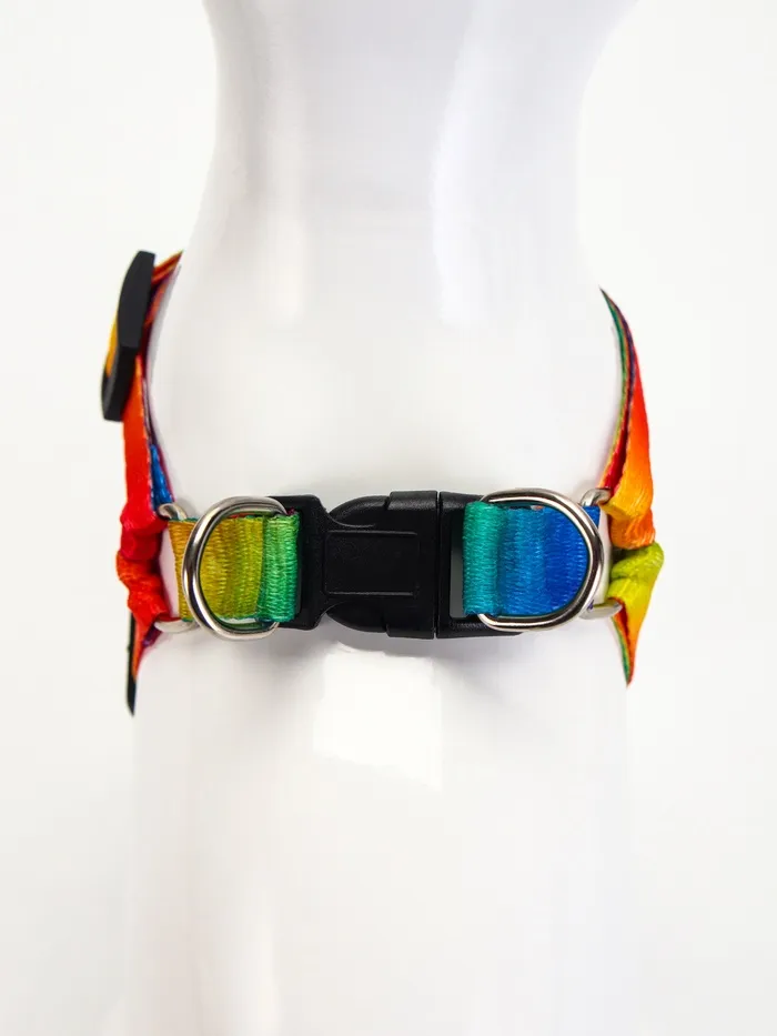 - Яркий дизайн: Разноцветные полосы создают праздничное настроение. Подходит для собак любых пород и размеров.