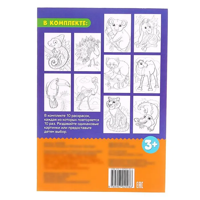 Раскрашивание помогает ребёнку развивать мелкую моторику, внимание и воображение. Каждый сюжет можно предложить группе детей для совместного творчества или использовать дома, чтобы занять малышей тихими играми. Легко отрываемые листы делают процесс удобным: их можно раздать всем участникам или предложить ребёнку выбрать любимый сюжет. Такие занятия учат быть внимательным, пробуждают интерес к животному миру и тренируют художественный вкус.