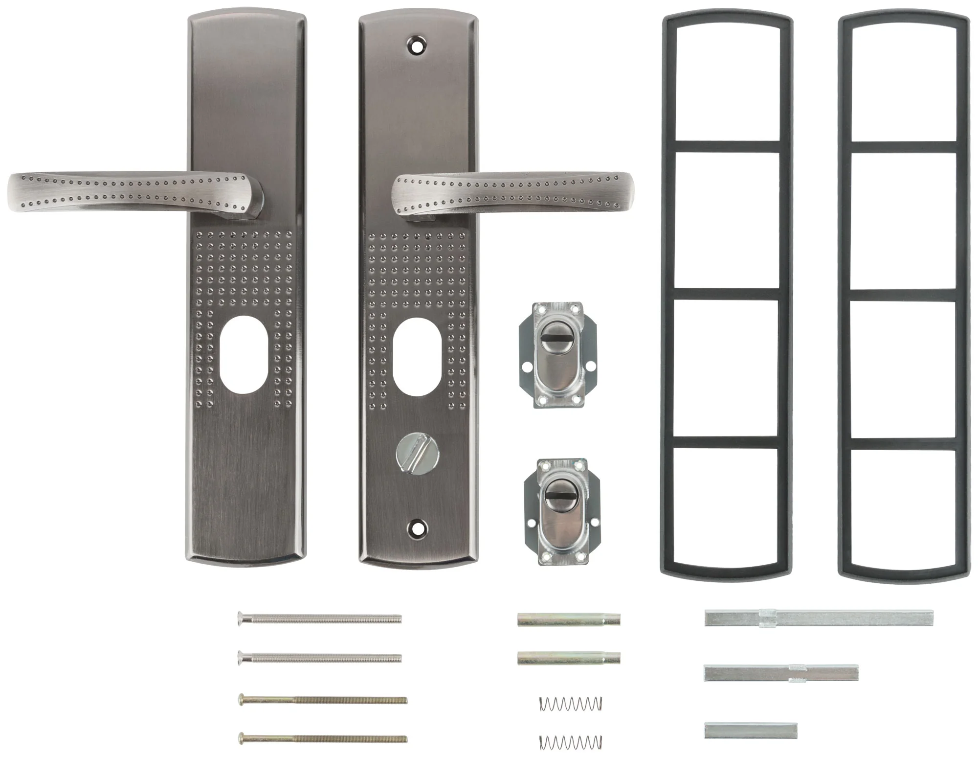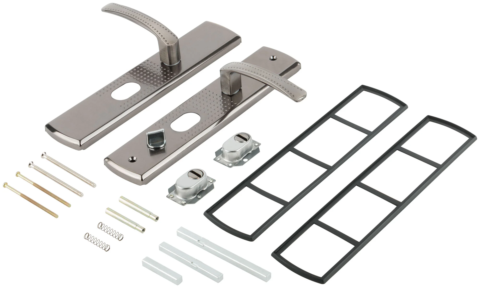Идеальное решение для замены или установки дверных ручек на китайские металлические двери. Универсальный комплект подходит как для автоматических, так и для неавтоматических замков, обеспечивая надежность и удобство в использовании.