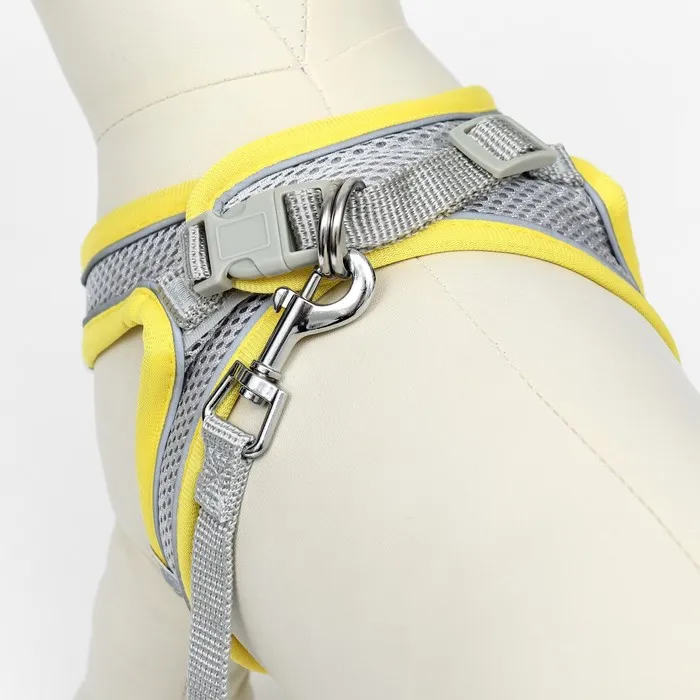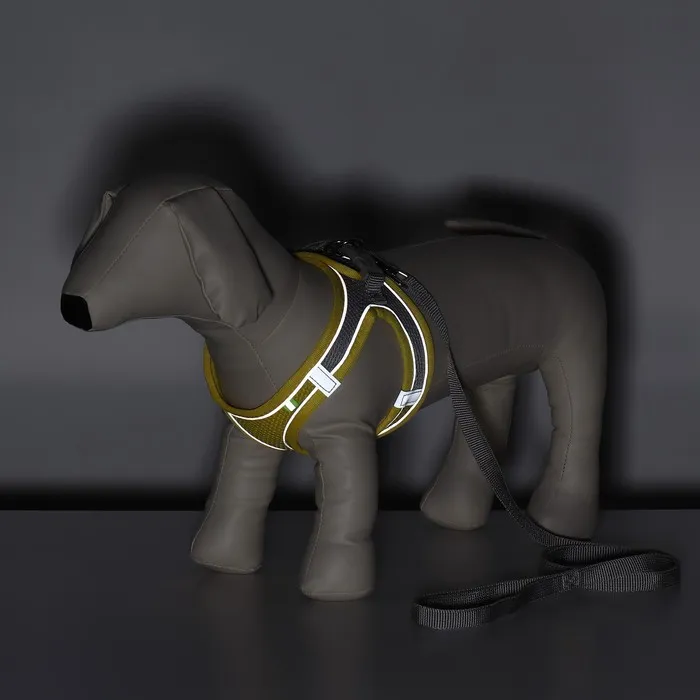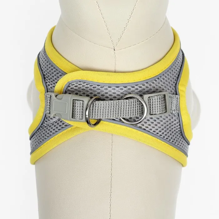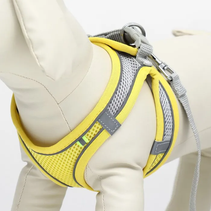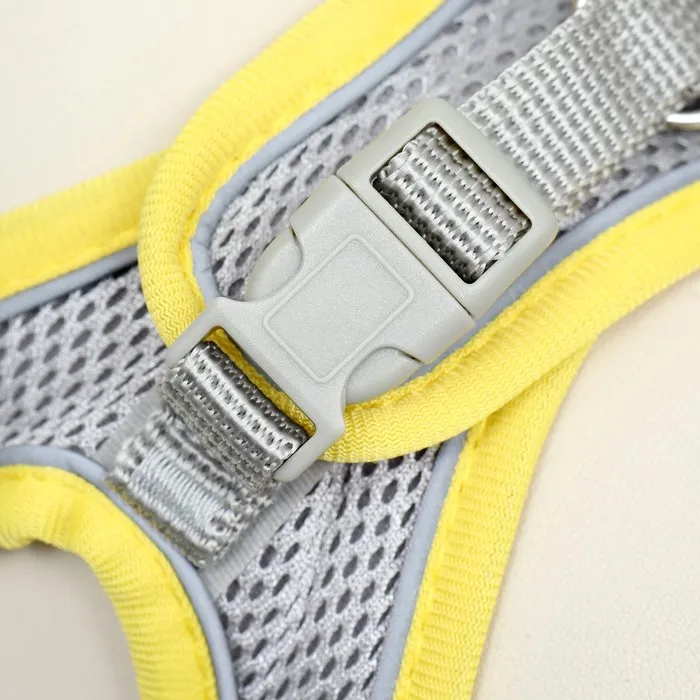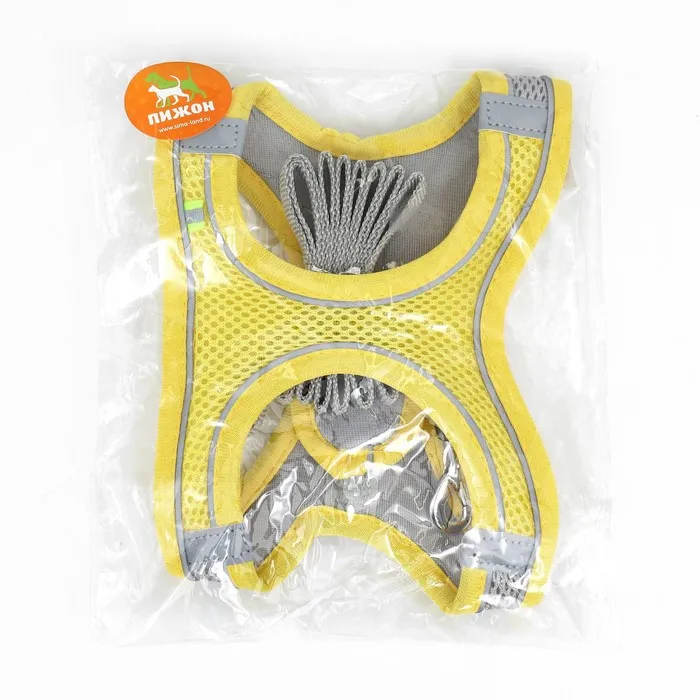 Комплект с мягкой шлейкой, быстросъемный, M, поводок 150 х 1,5 см, ОШ 38-44 см, ОГ 44-50 см, жёлтый
