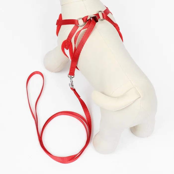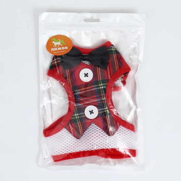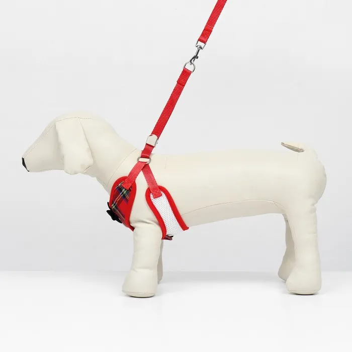 Комплект с мягкой шлейкой и бантиком "Клетка", размер M, поводок 120 x 1,5 см, ОГ 28-46 см — Характеристики