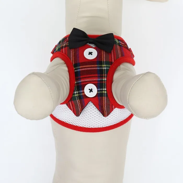 Комплект с мягкой шлейкой и бантиком "Клетка", размер M, поводок 120 x 1,5 см, ОГ 28-46 см