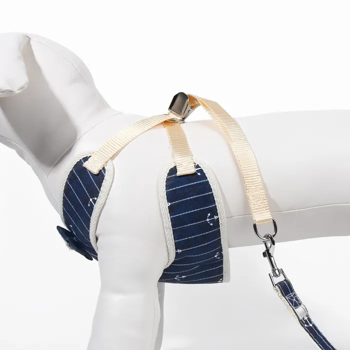 Узор в виде якорей добавляет комплекту морскую тематику и оригинальность, делая его заметным и привлекательным. Этот аксессуар станет отличным дополнением к образу вашего питомца, подчеркнув его силу и грациозность.